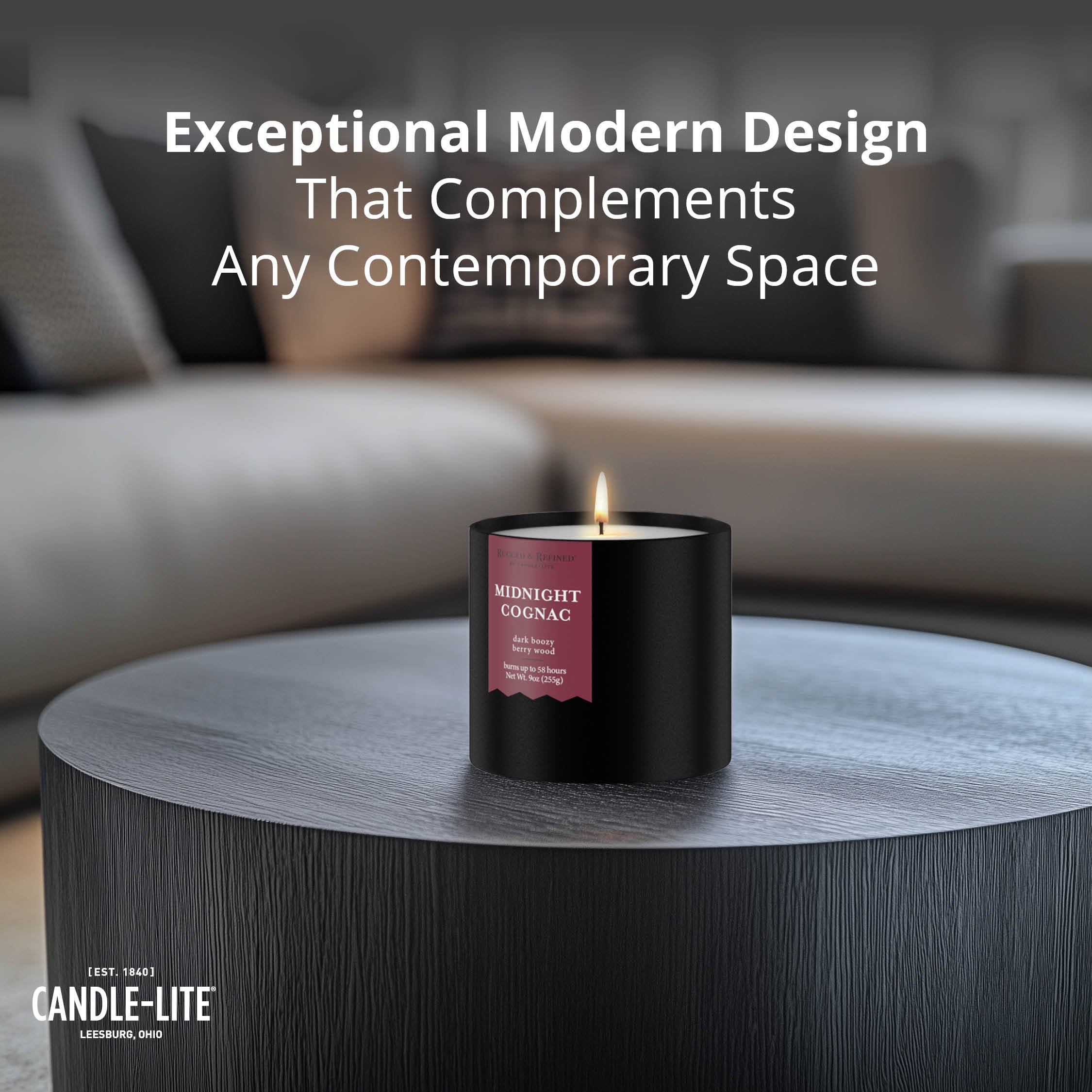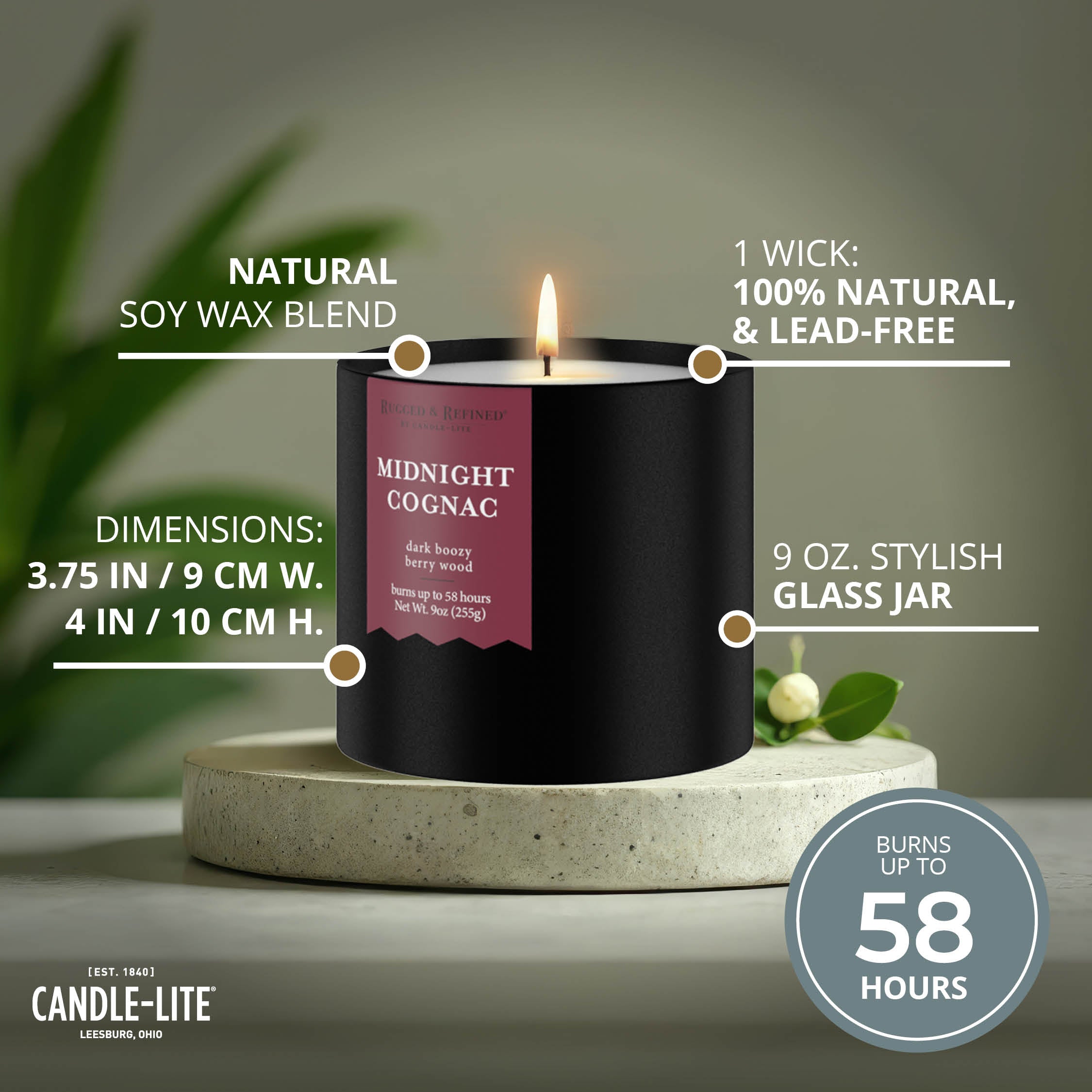 Midnight Cognac 9oz Black Tin Candle