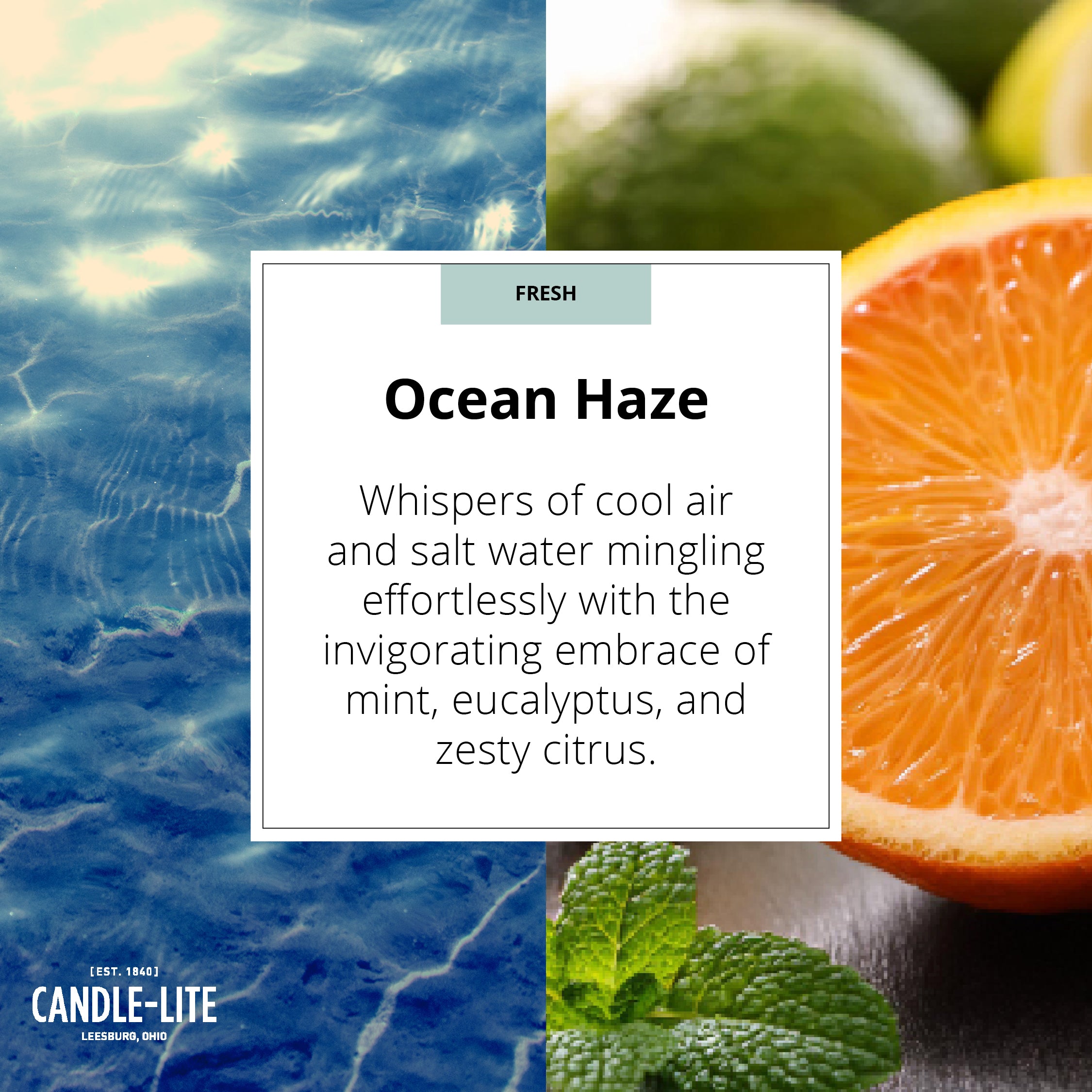 Immerse yourself in the whispers of cool air and salt water mingling effortlessly with the invigorating embrace of mint, eucalyptus, and zesty citrus. Through the haze of ocean fog, waves of rosemary, sage, and geranium emerge. Anchored by the grounding presence of sandalwood and cedarwood, the composition crescendos with the dusky allure of amber, each note a testament to the timeless allure of the sea.